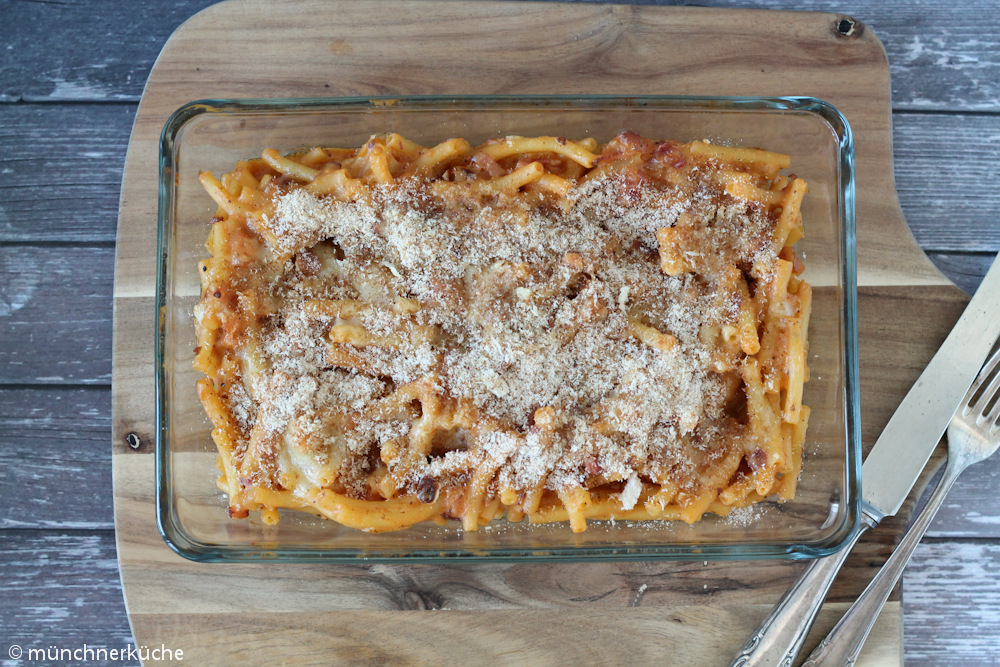 Jetzt wird es deftig – bayrische Mac and Cheese mit Brezenbrösel