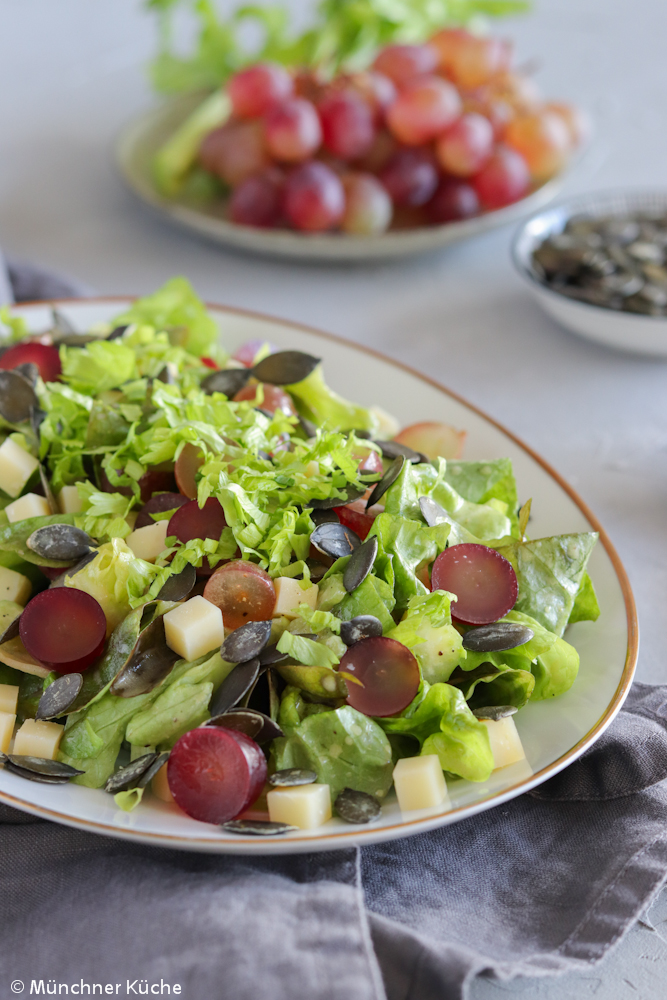 Salat mit Trauben, Käse und Kürbiskernen