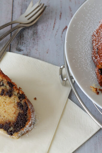 Feiner Mandel-Gugelhupf mit Schokostückchen
